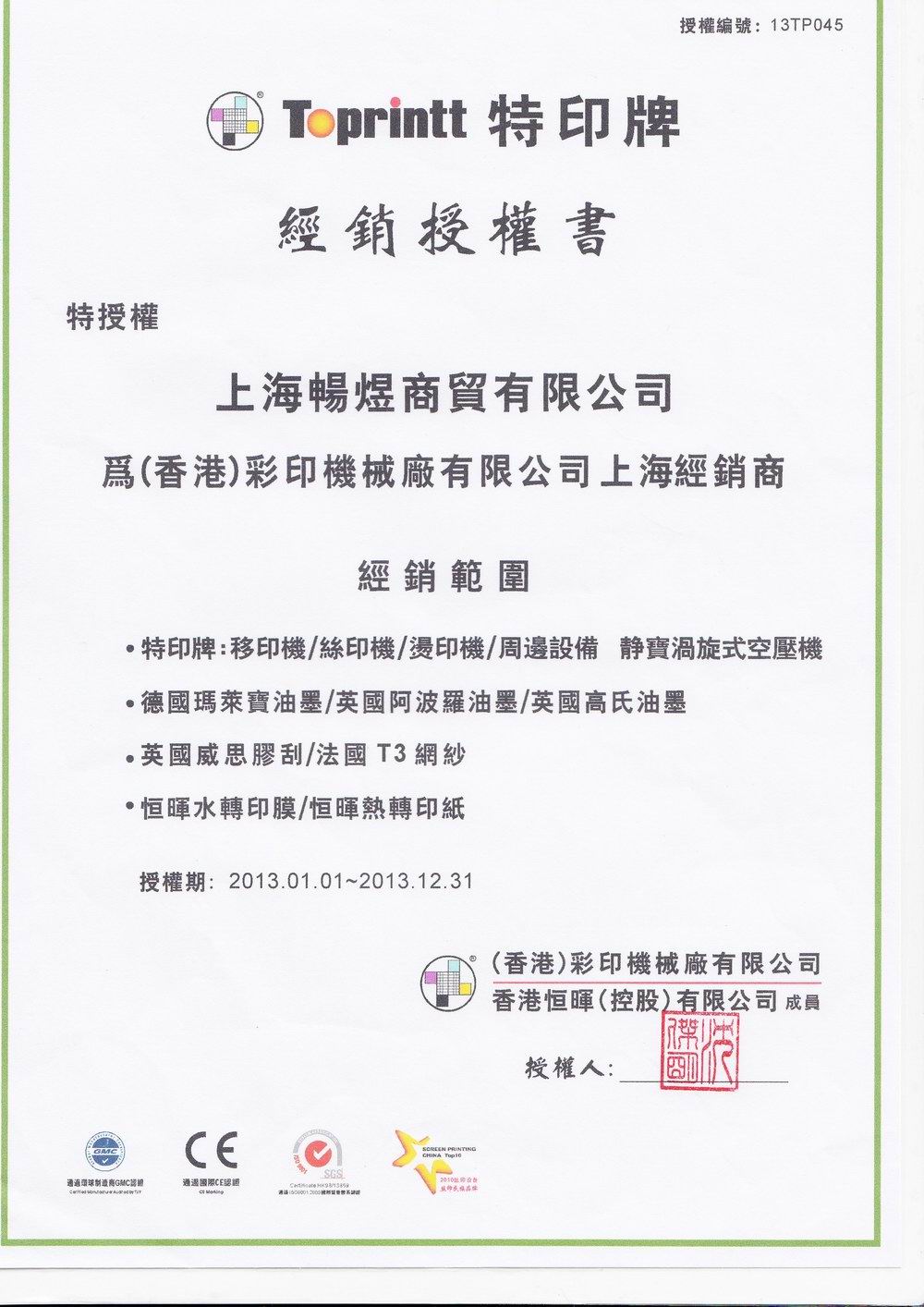 2013年授权书